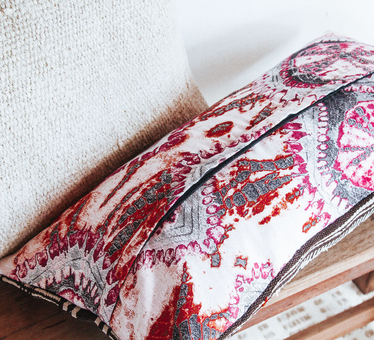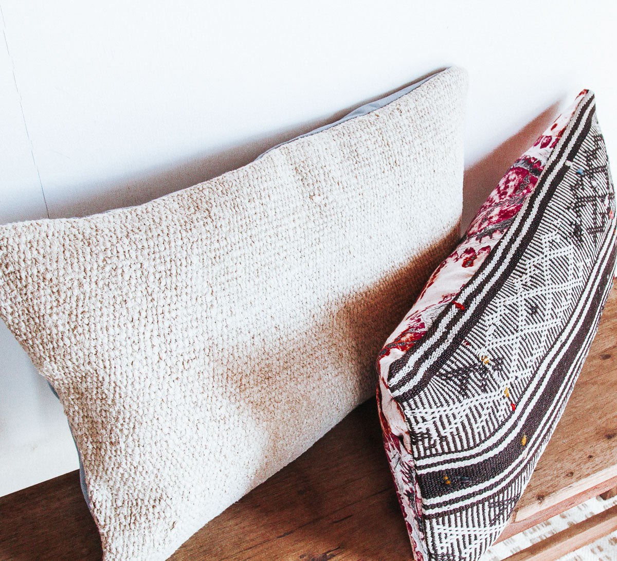 These handmade textural cushions are recycled from vintage Kilim rugs and turned into beautiful cushions perfect for layering.  They look amazing paired up or scattered with sheepskins for the ultimate boho vibe. Each one is unique and one of a kind.