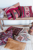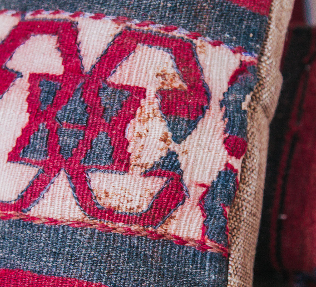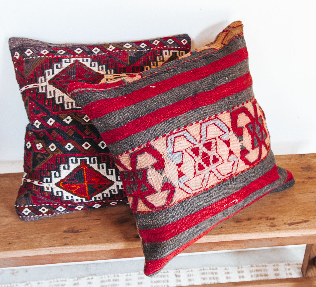 These handmade textural cushions are recycled from vintage wool Kilim rugs and turned into beautiful cushions perfect for layering.  They look amazing paired up or scattered with sheepskins for the ultimate boho vibe. Each one is unique and one of a kind.