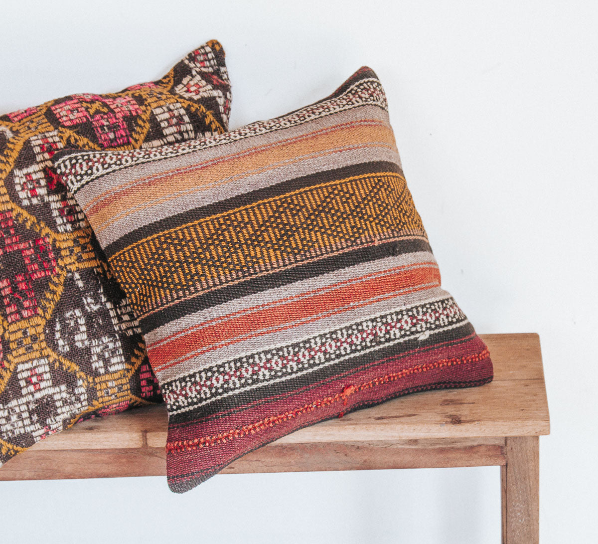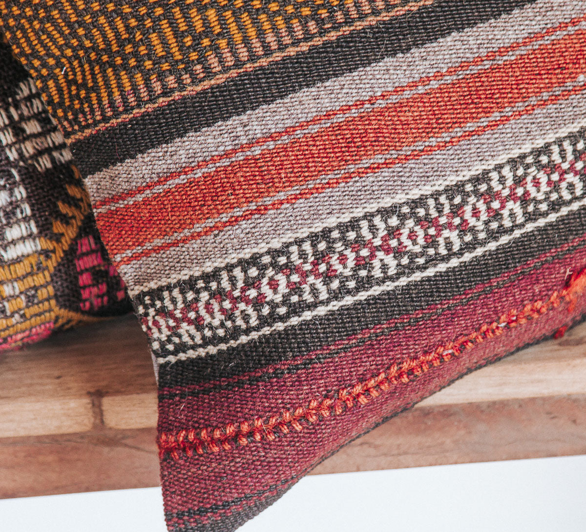 These handmade textural cushions are recycled from vintage wool Kilim rugs and turned into beautiful cushions perfect for layering.  They look amazing paired up or scattered with sheepskins for the ultimate boho vibe. Each one is unique and one of a kind.
