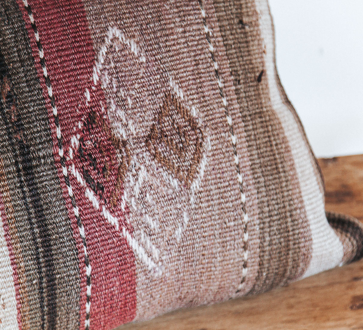 These handmade textural cushions are recycled from vintage wool Kilim rugs and turned into beautiful cushions perfect for layering.  They look amazing paired up or scattered with sheepskins for the ultimate boho vibe. Each one is unique and one of a kind.