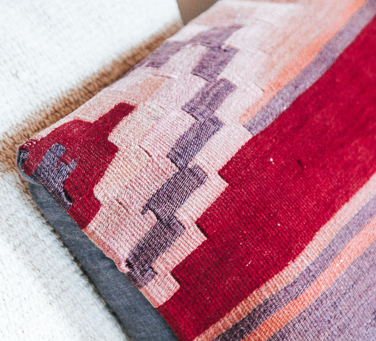 These handmade textural cushions are recycled from vintage wool Kilim rugs and turned into beautiful cushions perfect for layering.  They look amazing paired up or scattered with sheepskins for the ultimate boho vibe. Each one is unique and one of a kind.