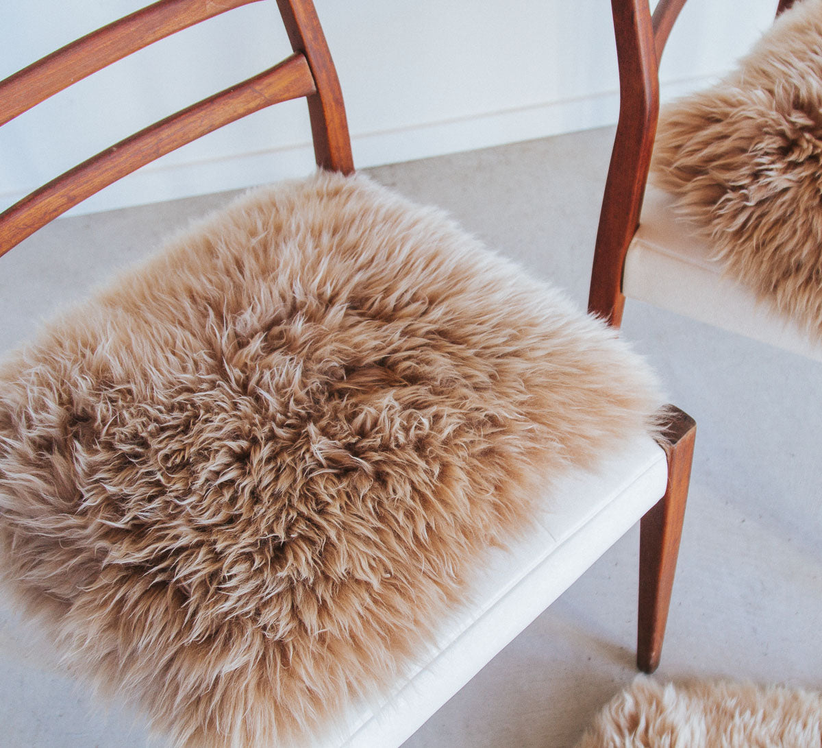 Bring warmth and texture to your seating with our natural New Zealand sheepskin chair pads.  Crafted from rustic, long-wool sheepskin, they'll add that soft, lived-in luxury to any chair, bench, or nook. No two are the same.  Each piece has its own natural tone, and character, giving your space that effortlessly collected, bohemian feel.