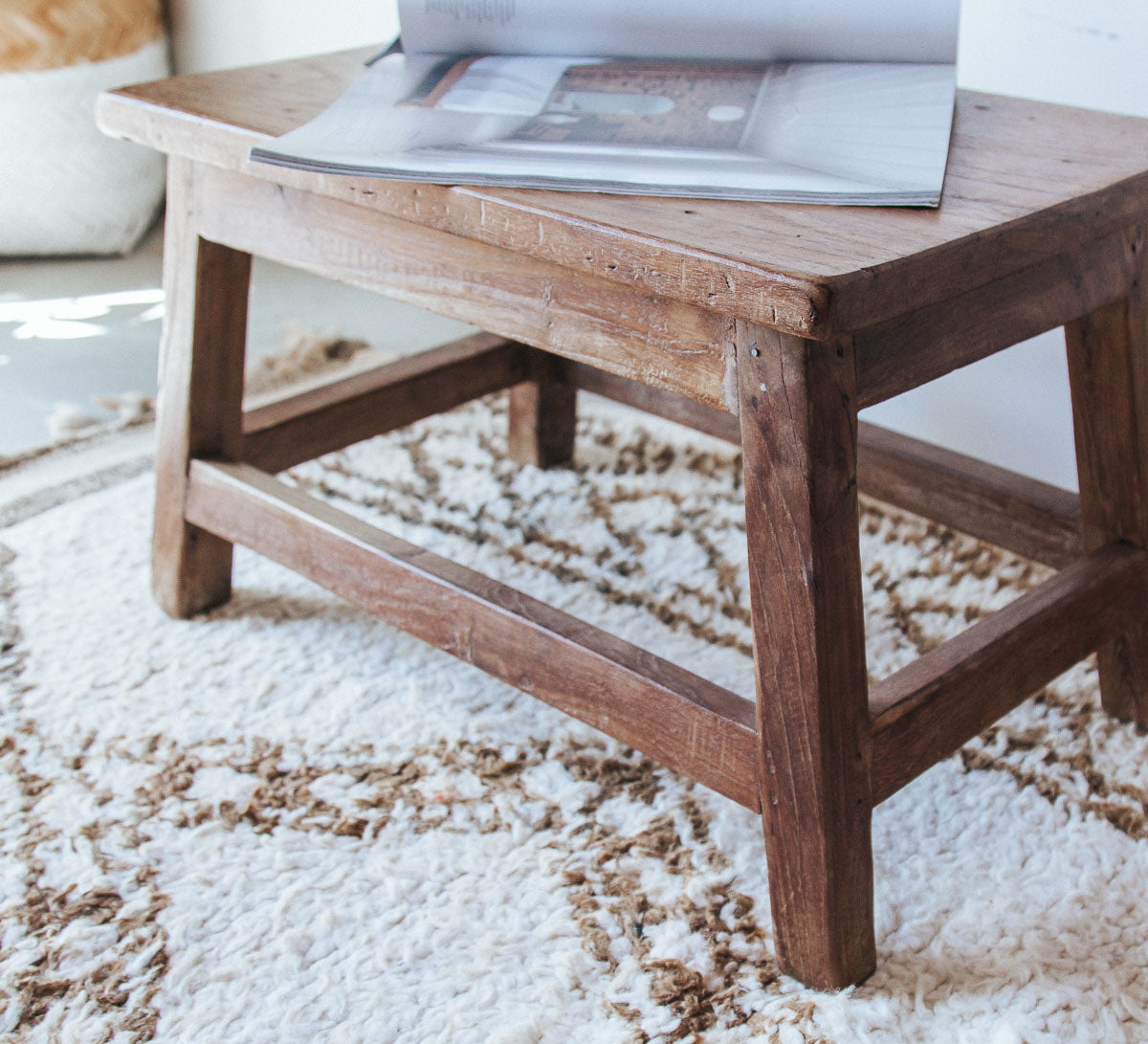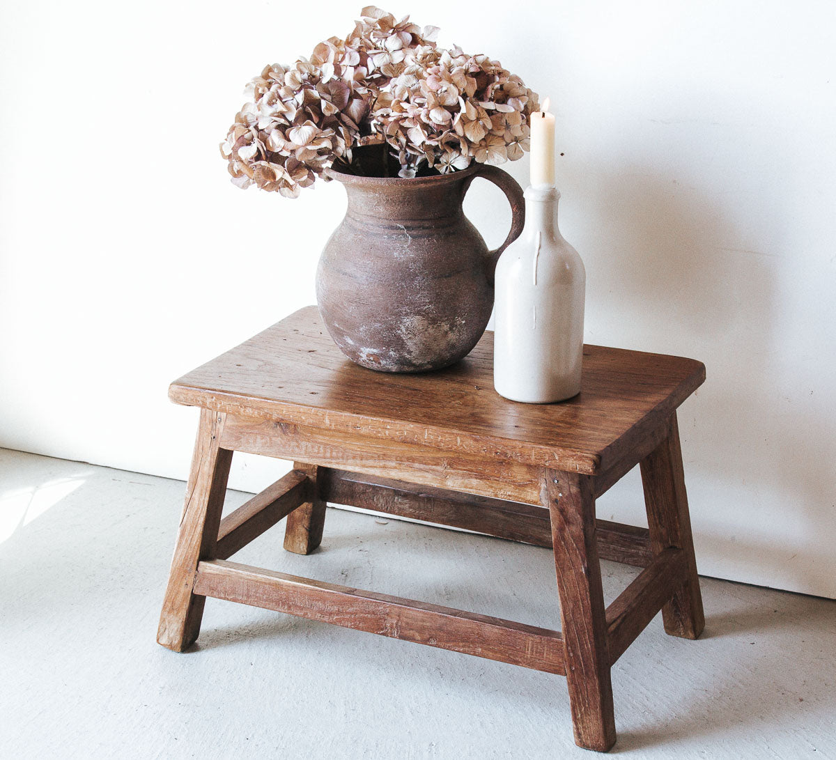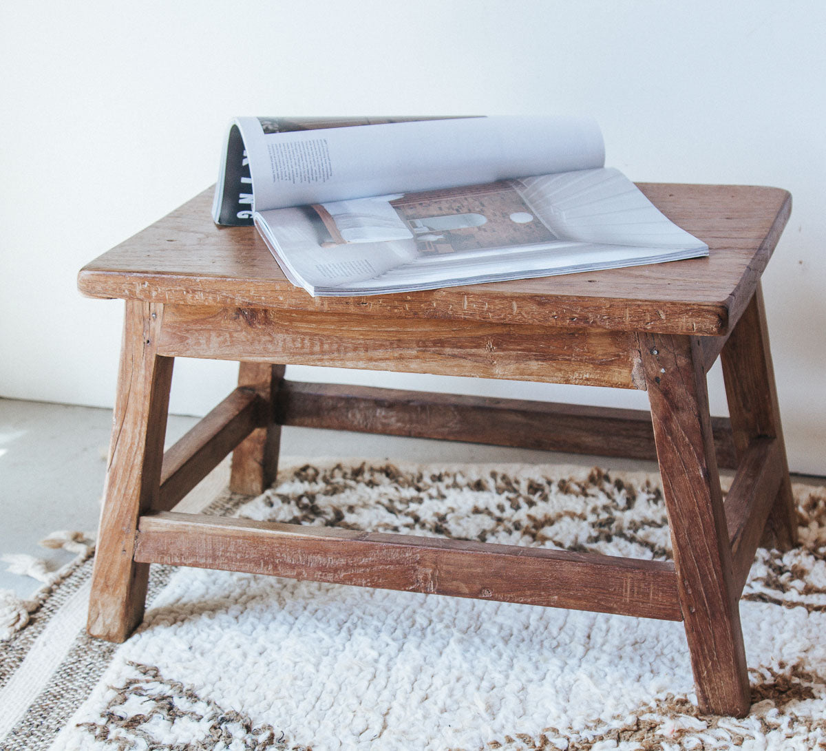 Made from reclaimed wood, this charming stool has a gorgeous patina, bringing texture to any space.