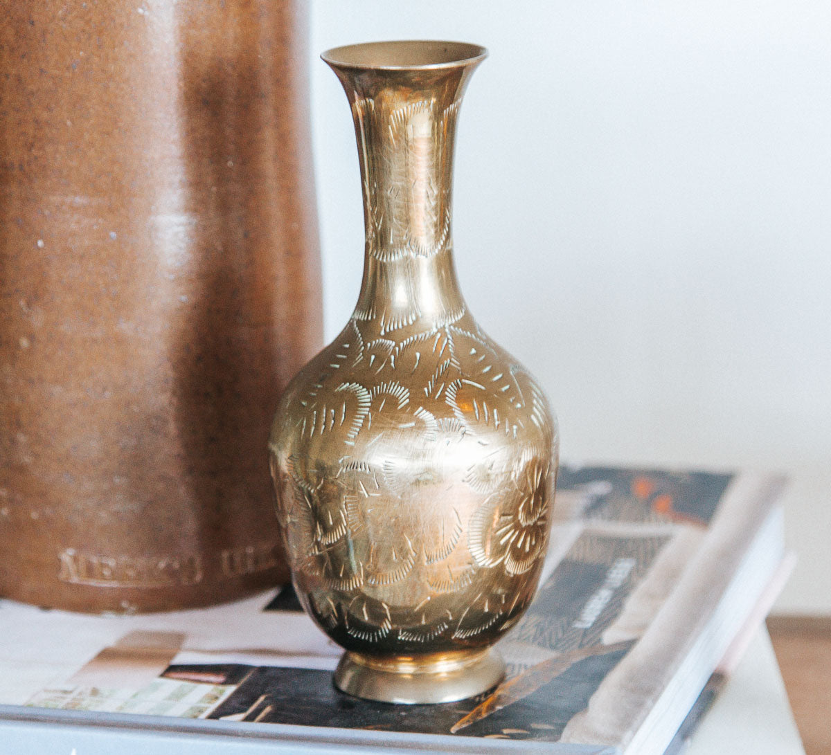 Bring your living room to life by adding some bling with this sweet brass vase.  Perfect for holding your spoons on the bench or for your favourite dried floral pieces.