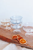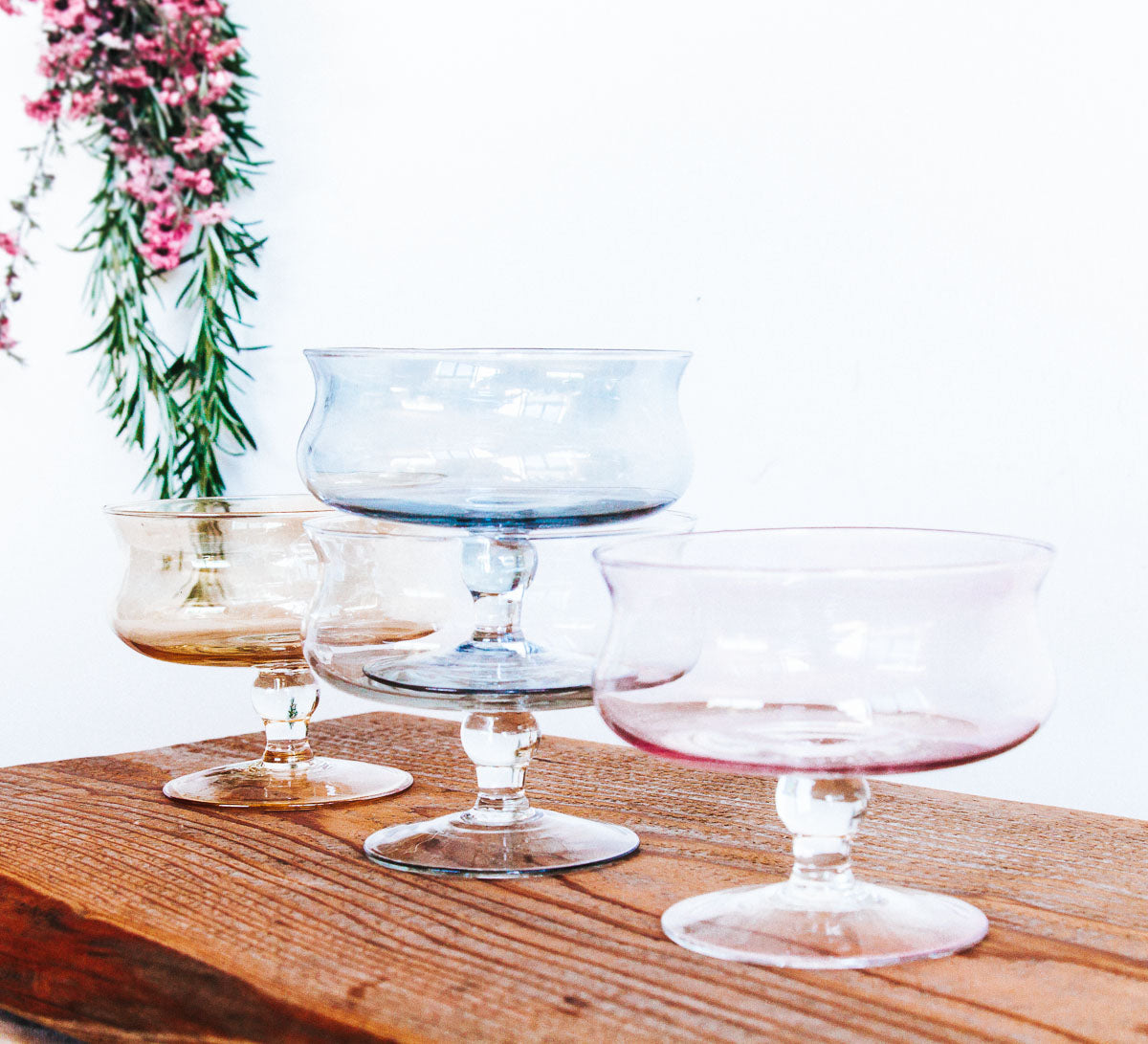 Elevate your entertaining with these four exquisite vintage cocktail glasses that shimmer in pale rainbow hues, channelling pure Gatsby glamour. Crafted with fine rims and versatile enough for cocktails or decadent desserts, they're the ultimate statement piece for your table.  These luxe beauties bring bohemian sophistication and playful elegance.