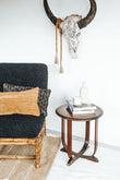 Small tables are endlessly useful. So we love bringing in one with a bit of character like this vintage wooden side table.  Plonk it in a convenient spot next to your favourite couch or armchair, add in a lamp and a candle or two, and you're all set.