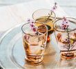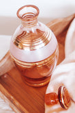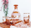 This delicate pink and gold beauty is a must for every party!  Stunning, unique and the perfect boho centrepiece for serving up your favourite vino or port.  The bottle features a glass stopper and comes with five glasses.