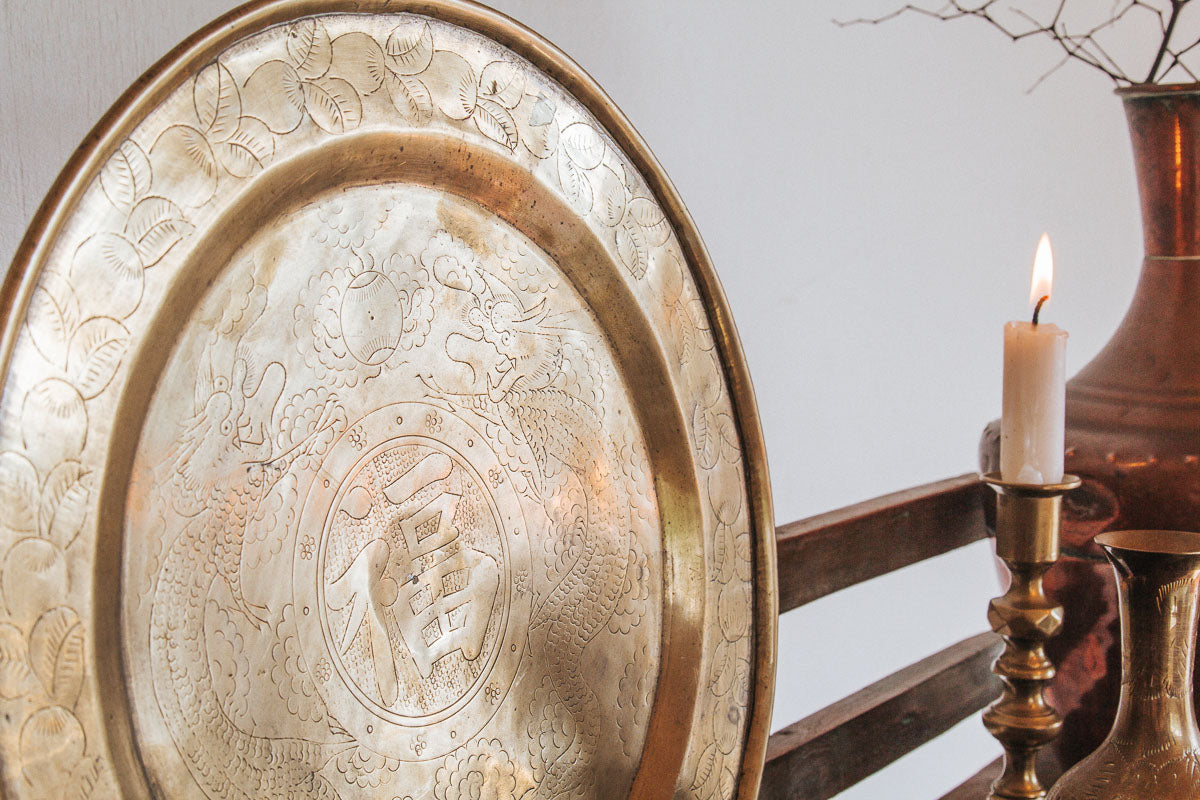 Add some bohemian bling with this ethnic brass tray.  Perfect for serving up your drinks or snacks.  Love outdoor living?  Then pop a few candles on it and let the nights linger on endlessly. Handwash only