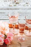 We're crushin' on blush! These stunning French Arcoroc wine glasses are ready to show off. With a soft rose swirl pattern & delicate stem, they'll fit just fine on a warm lazy Sunday arvo with your favourite Henkell Trocken.   8 x 100ml glasses.