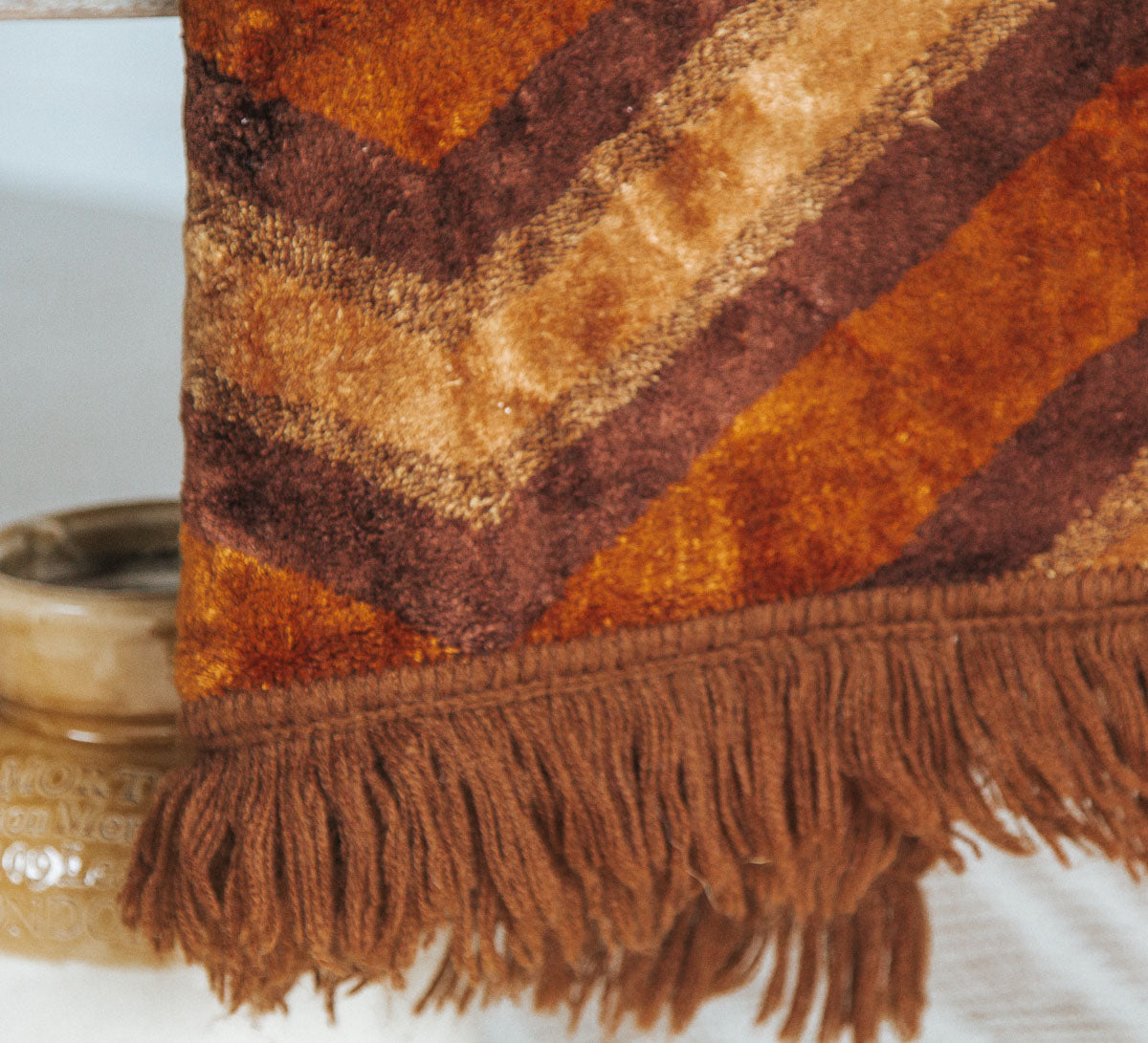Let your inner bohemian run wild with this gold velvet tassled beauty.  With a decent weight and perfect size, it'll make the perfect throw across the end of your bed, over the couch or on your favourite chair.