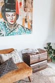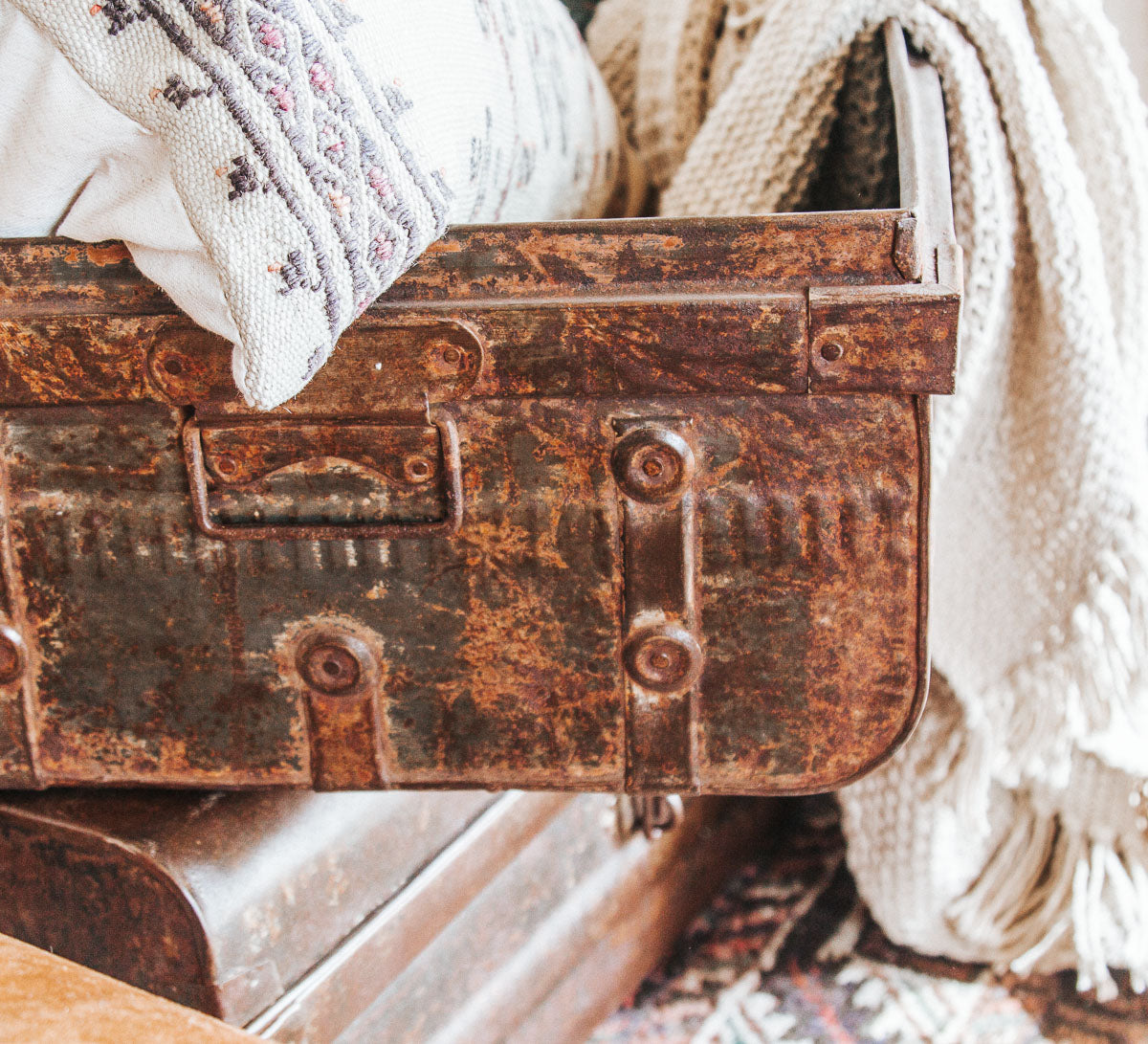We're diggin' the vintage vibe & character of this boho travel trunk.  This one's for the lovers of patina and a worn-in storytelling piece. We reckon trunks have to be one of the most versatile pieces of furniture.  Put to use as a coffee table, blanket storage, photo box, kids' toys, in the sewing room or storing magazines.