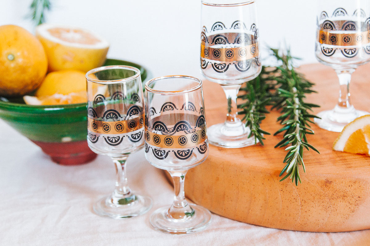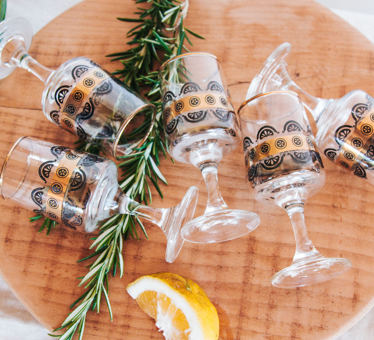 For when you need that luxe boho vibe!  Cosy nights in by the fire, sheepskin slippers and a glass of your favourite tipple.  Everything will look 100% more awesome in these retro black and gold liqueur glasses.  Set of 5.