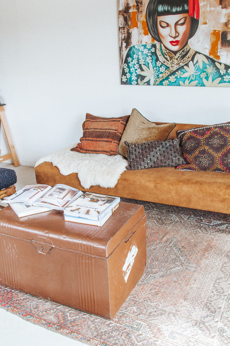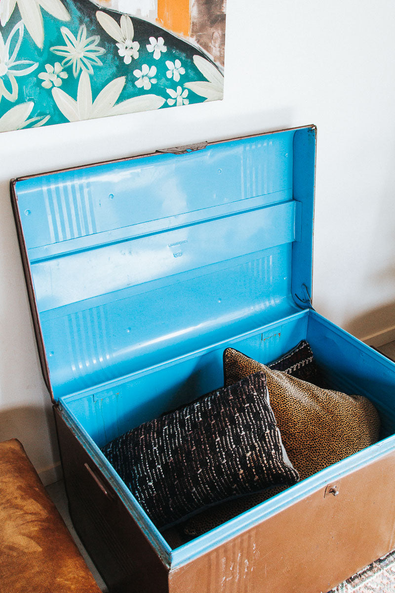 We're diggin' the vintage vibe & character of this boho travel trunk.  This one's for the lovers of patina and a worn-in storytelling piece. We reckon trunks have to be one of the most versatile pieces of furniture.  Put to use as a coffee table, blanket storage, photo box, kids' toys, in the sewing room or storing magazines.
