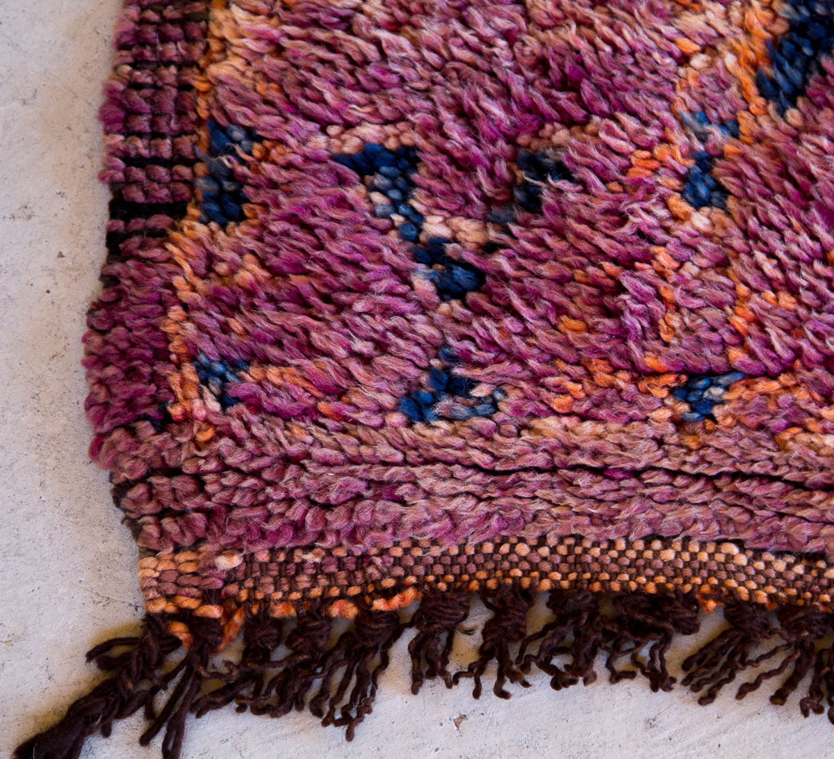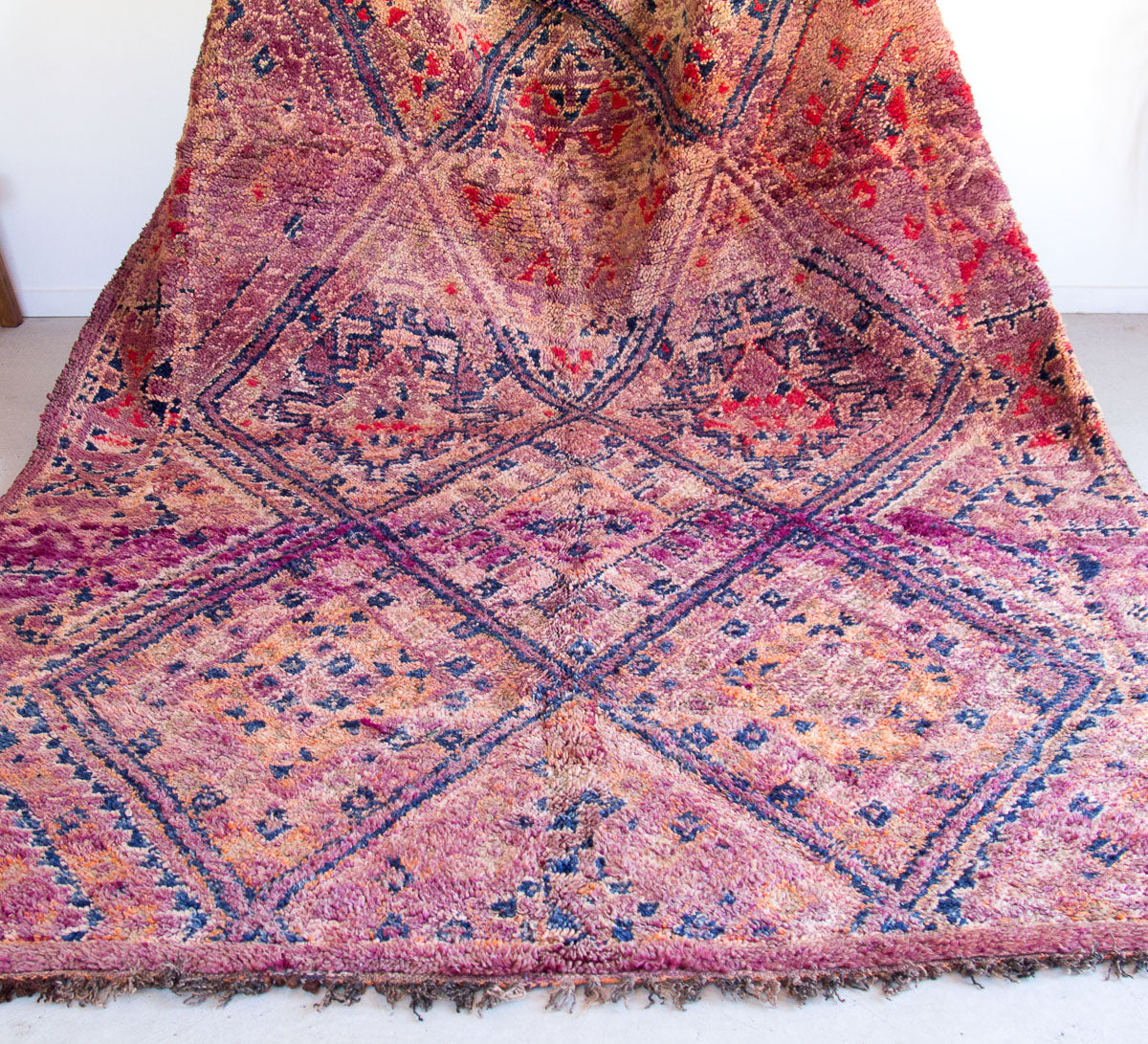 PLEASE NOTE:  All our Moroccan rugs are handmade, which means there may be imperfections in weaving, pattern, or shape.  These are vintage items and therefore may have slight wear and repairs or fading.  They are lovingly cleaned and repaired using traditional methods before arriving.