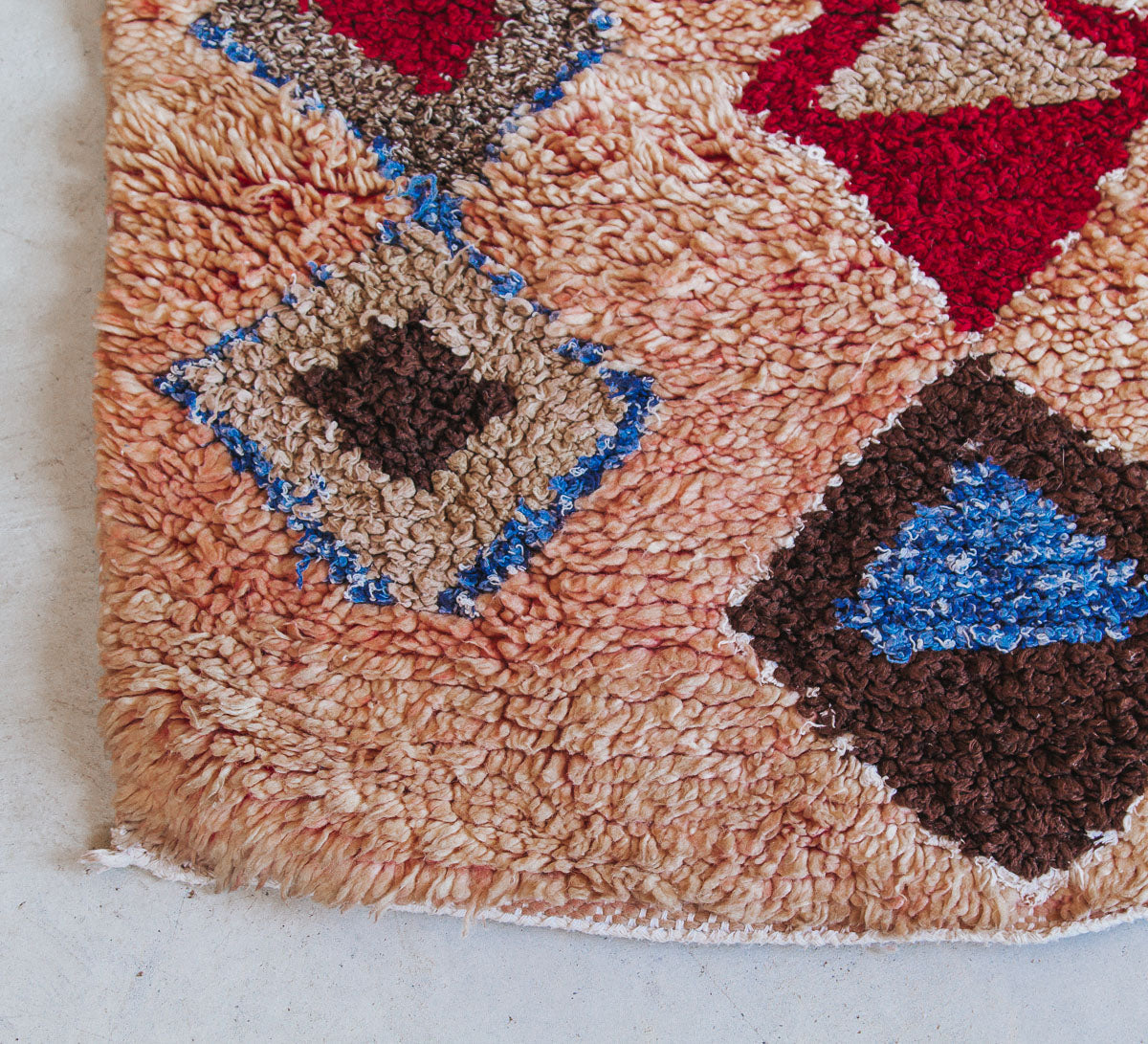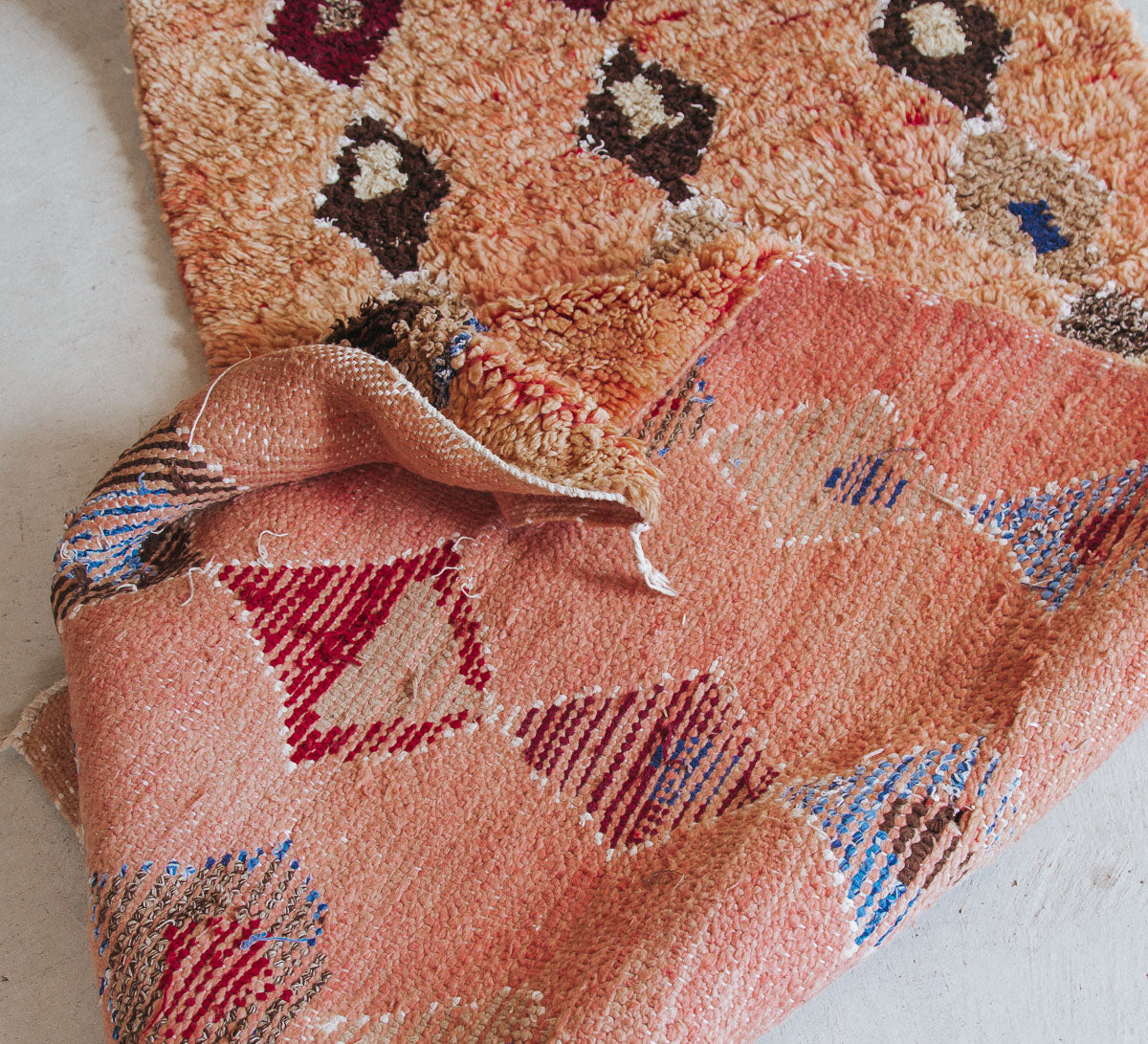 PLEASE NOTE: All our Moroccan rugs are handmade, which means there may be imperfections in weaving, pattern, or shape.  These are vintage items and therefore may have slight wear and repairs or fading.  They are lovingly cleaned and repaired using traditional methods before arriving.
