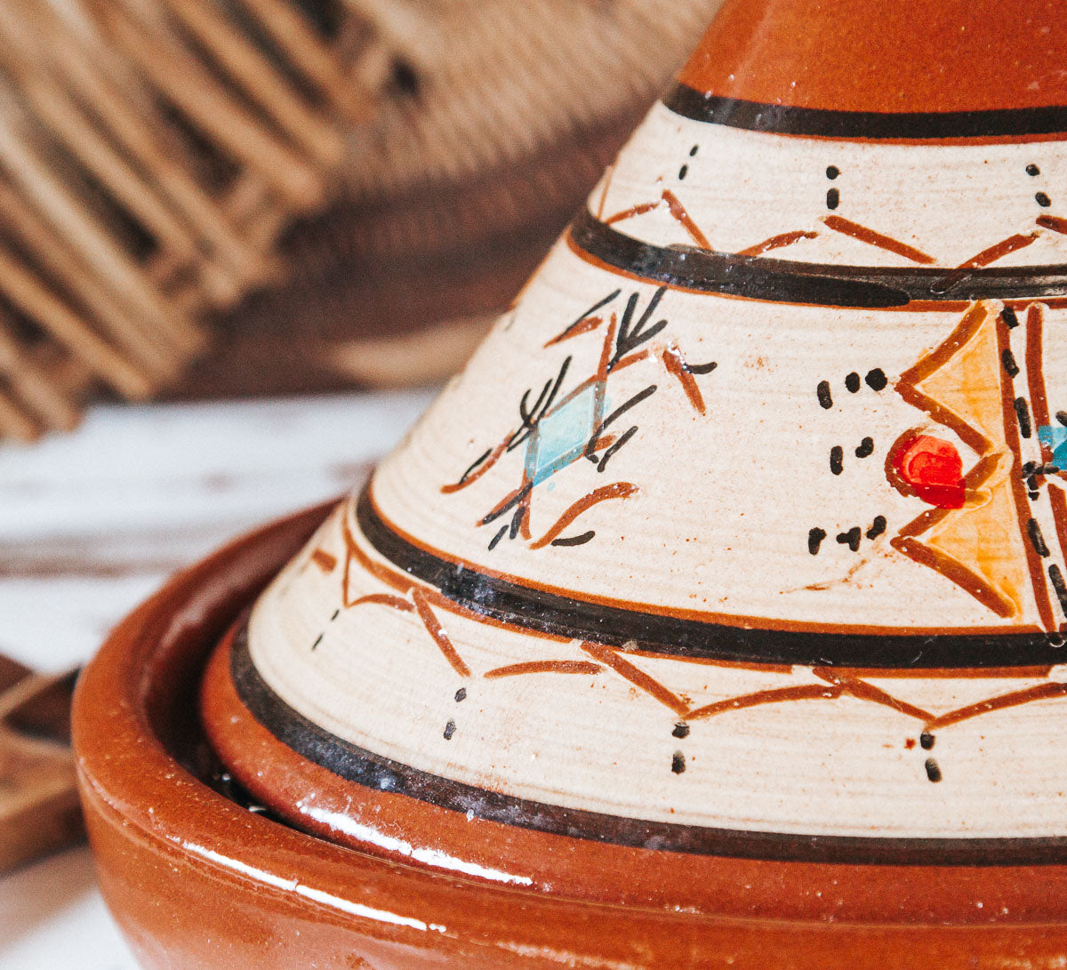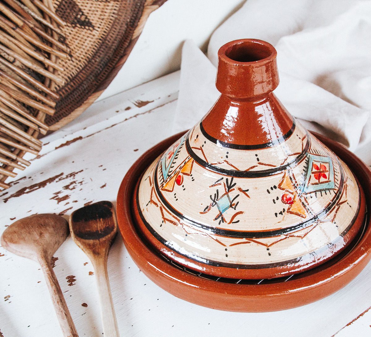Add a bright pop of colour to your kitchen with this vintage Moroccan tagine. Crafted from glazed terracotta, it’s perfect for slow-cooking your favourite lamb recipes, infusing every bite with rich, authentic flavours. Bring a playful touch of tradition and vibrant style to your cooking adventures.