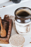 This rustic pottery storage jar will bring all the earthy boho vibes to your kitchen.  Burnt coffee tones with a landscape picture.  Perfect for storing pantry goods or put it to use in your bathroom.