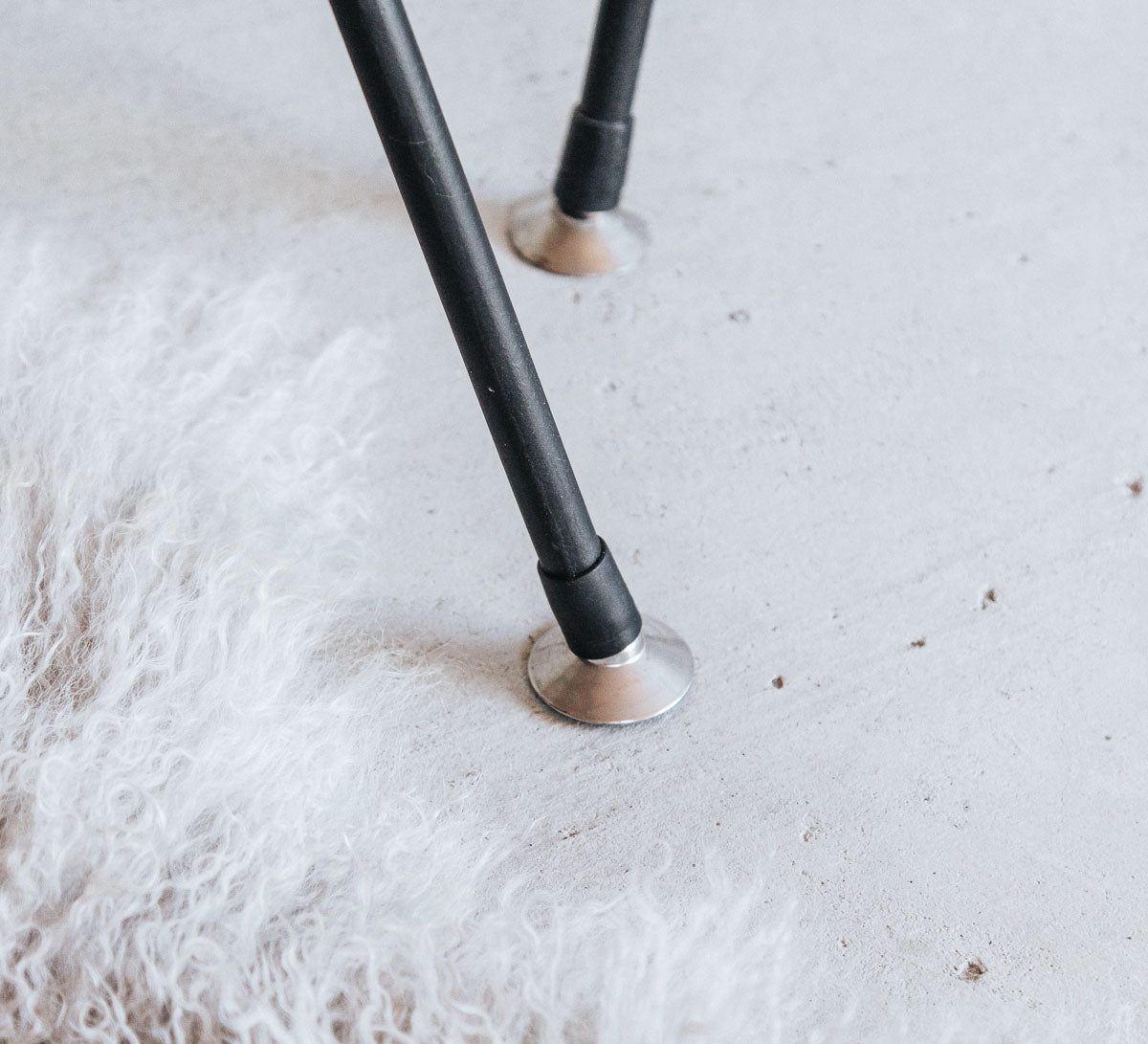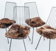 For lovers of Mid-Century minimalism.  Simple curved steel frame design, lightweight and easy to move from room to room - even to your sunny verandah!  Add one of our woolly sheepskin pads, style it with cushions of your choice or simply layer up with sheepskins for the ultimate Scandi vibe.  We reckon these would mix and match awesomely at your dining table with all your favourite Mid-Century designs.  Set of 4.  Two slightly different styles of chair.
